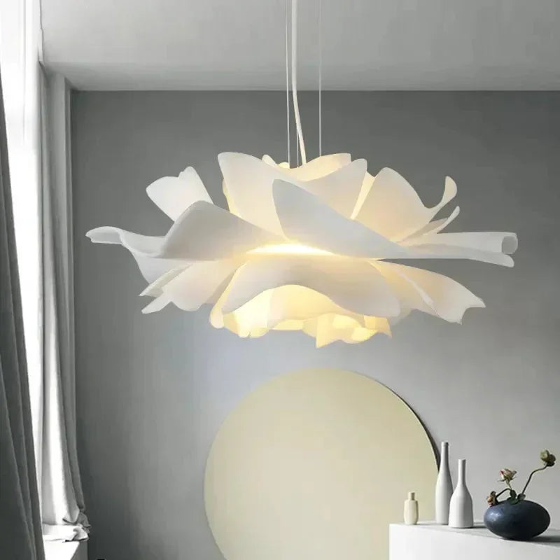 The French Flower Petal Chandelier combines modern elegance with creative design, featuring a delicate pine cone-inspired shape. Its minimalist white finish and soft LED glow make it perfect for bedrooms, dining rooms, or studies, adding sophistication to any space.
