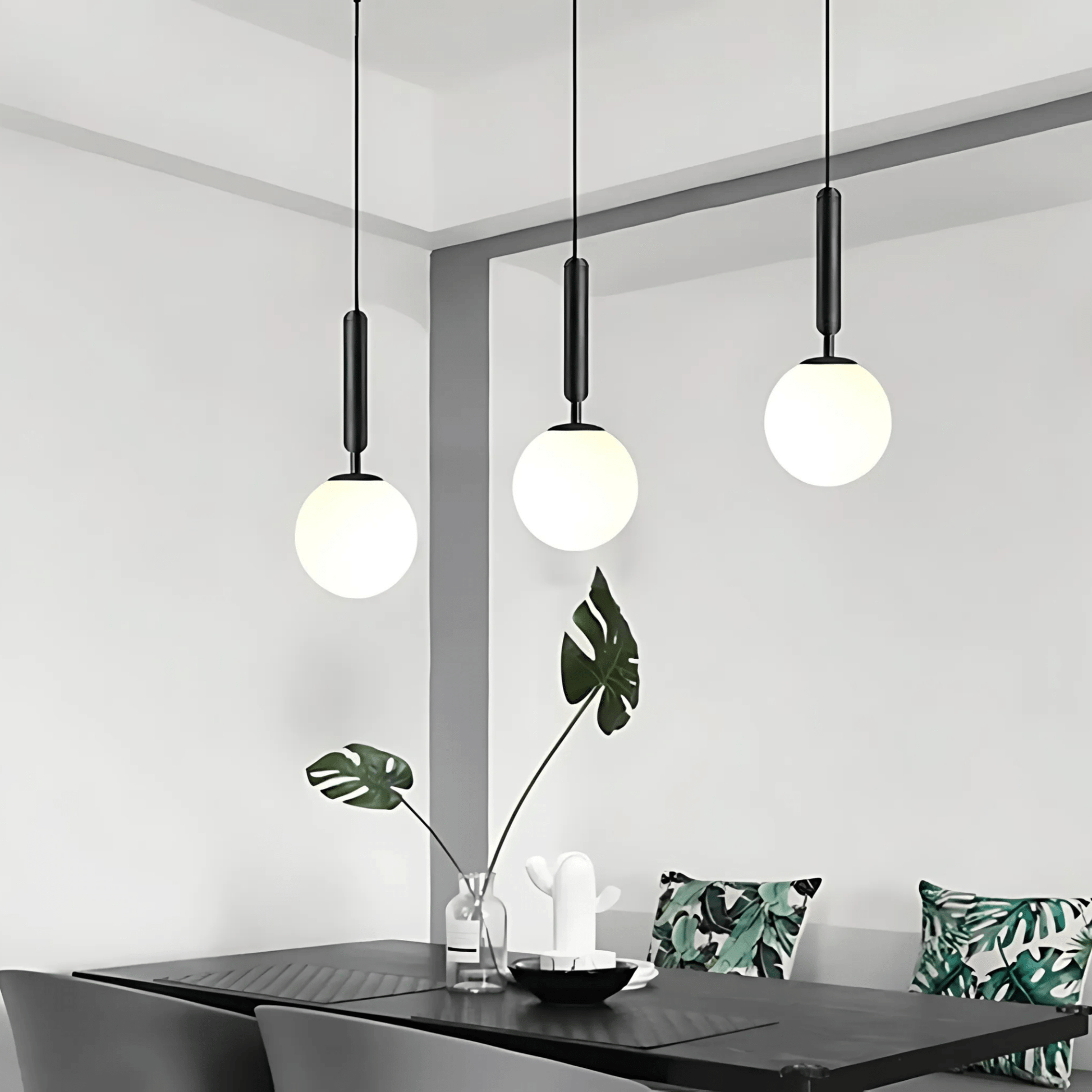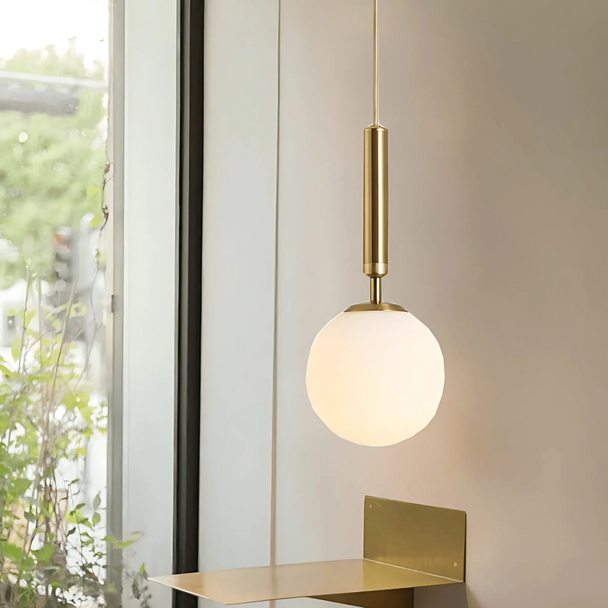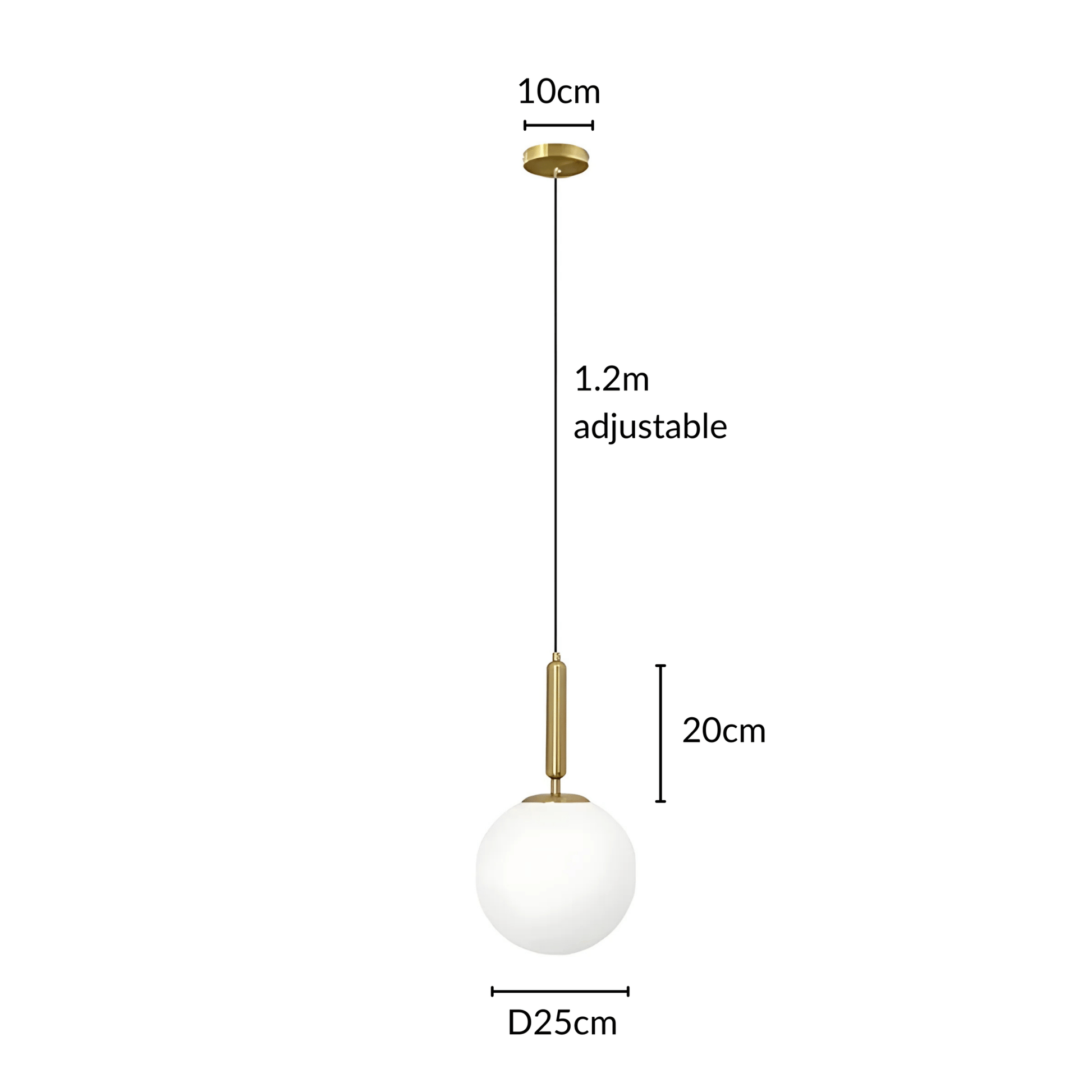 Featuring a frosted white glass globe and your choice of brushed brass or satin black finish, this pendant light offers a timeless balance of softness and structure. Available in three sizes, it works beautifully whether styled solo or in a group. A refined choice for kitchens, hallways, or cosy reading corners.