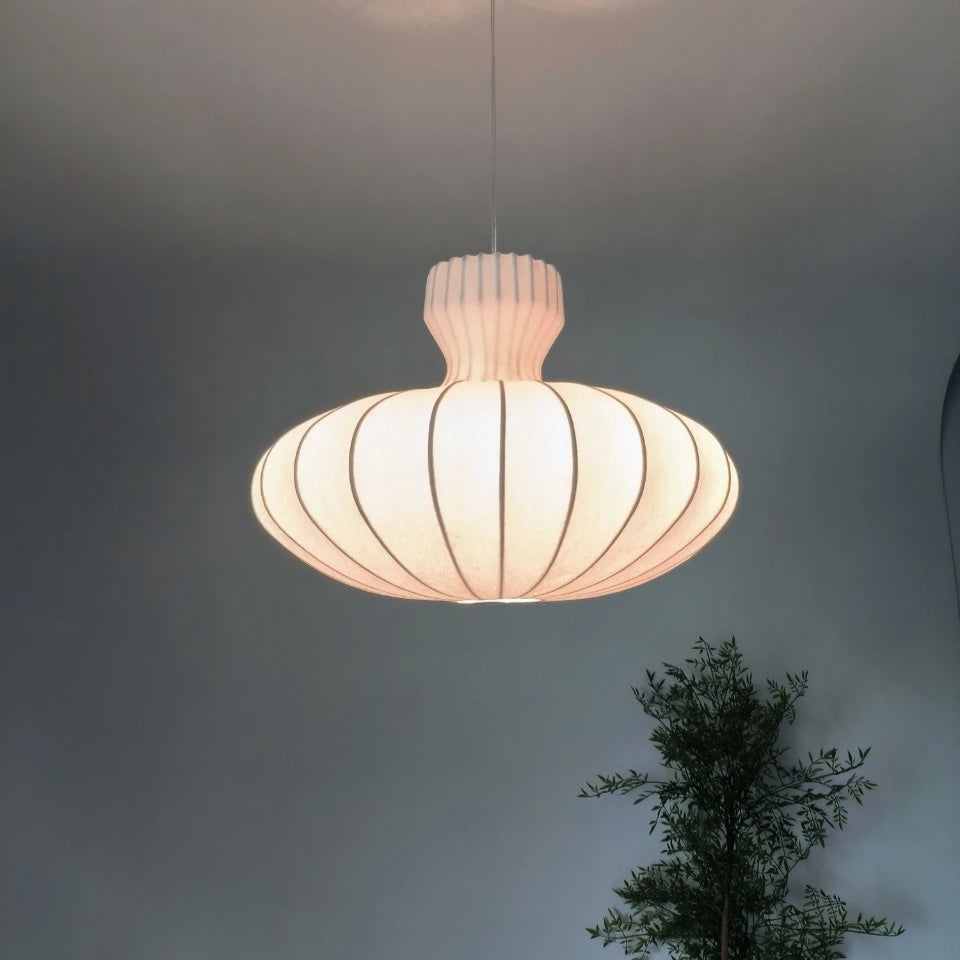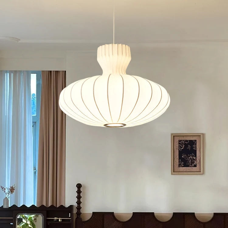 Graceful and refined, this silk bloom chandelier captures the delicate essence of Wabi-Sabi design. With flowing traditional Japanese silk and a soft, organic form, it creates a serene statement in any space.